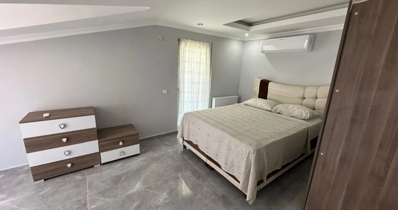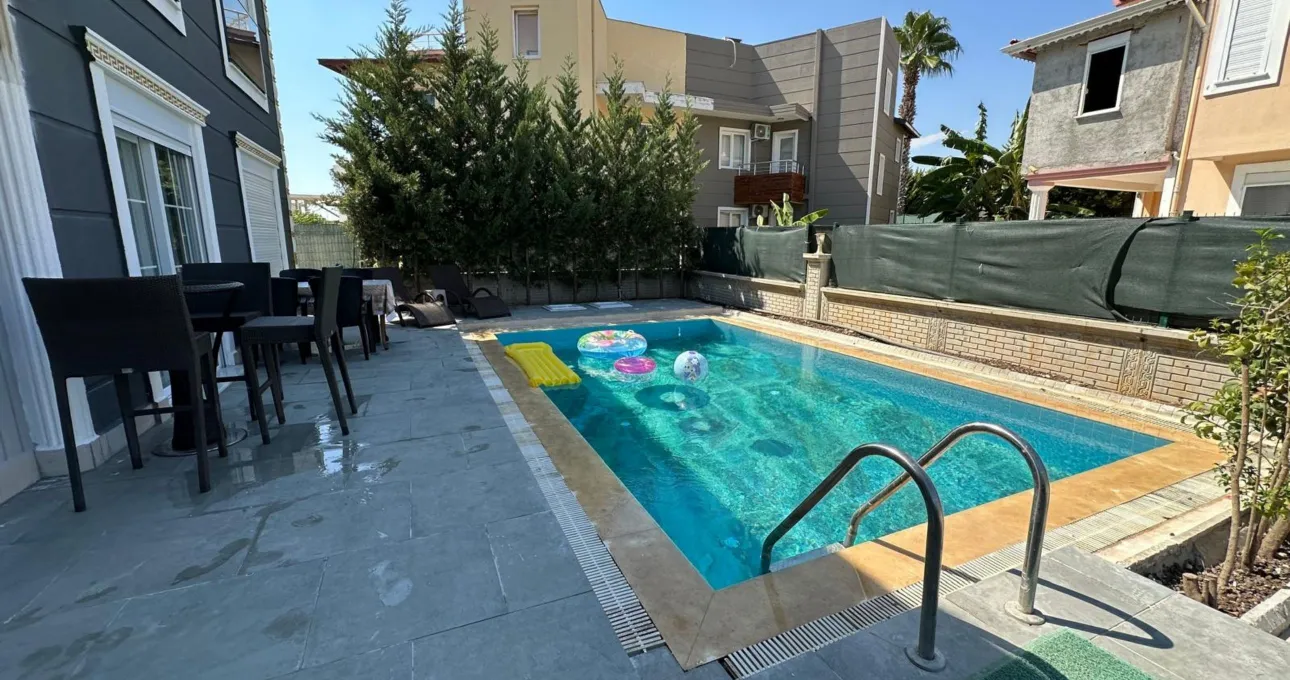 Bu villanın en dikkat çekici özelliklerinden biri tamamen size ait özel yüzme havuzudur. Geniş bahçesi sayesinde gün boyu güneşin tadını çıkarabilir, akşam saatlerinde ise sevdiklerinizle birlikte keyifli vakit geçirebilirsiniz. Dış alanda bulunan oturma alanları ve barbekü bölümü, tatilinizi daha eğlenceli hale getirir.