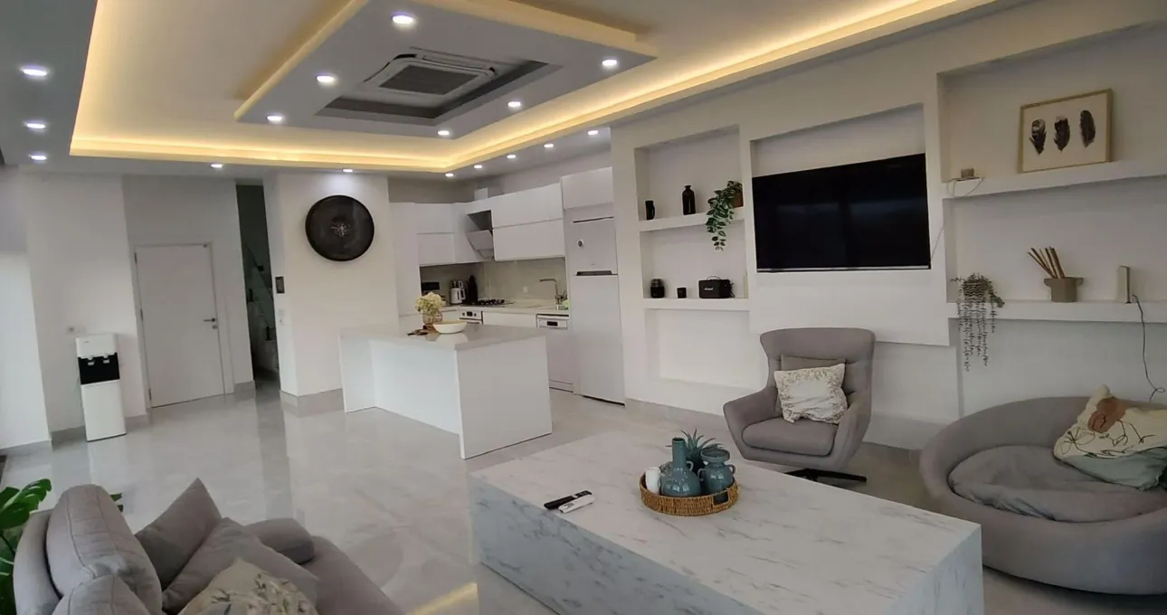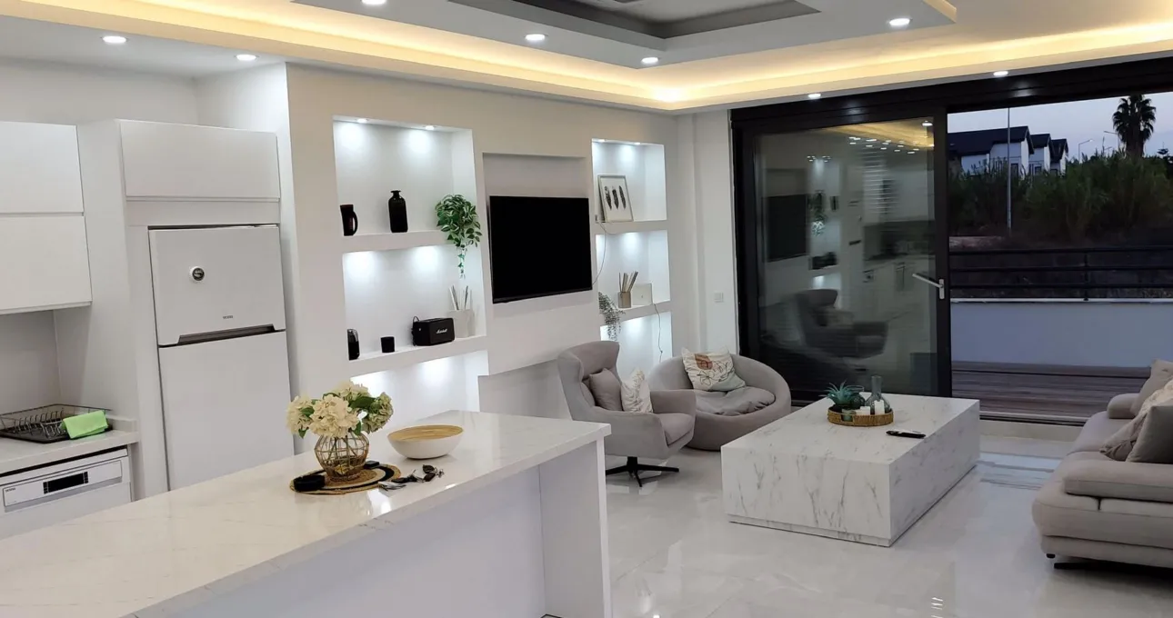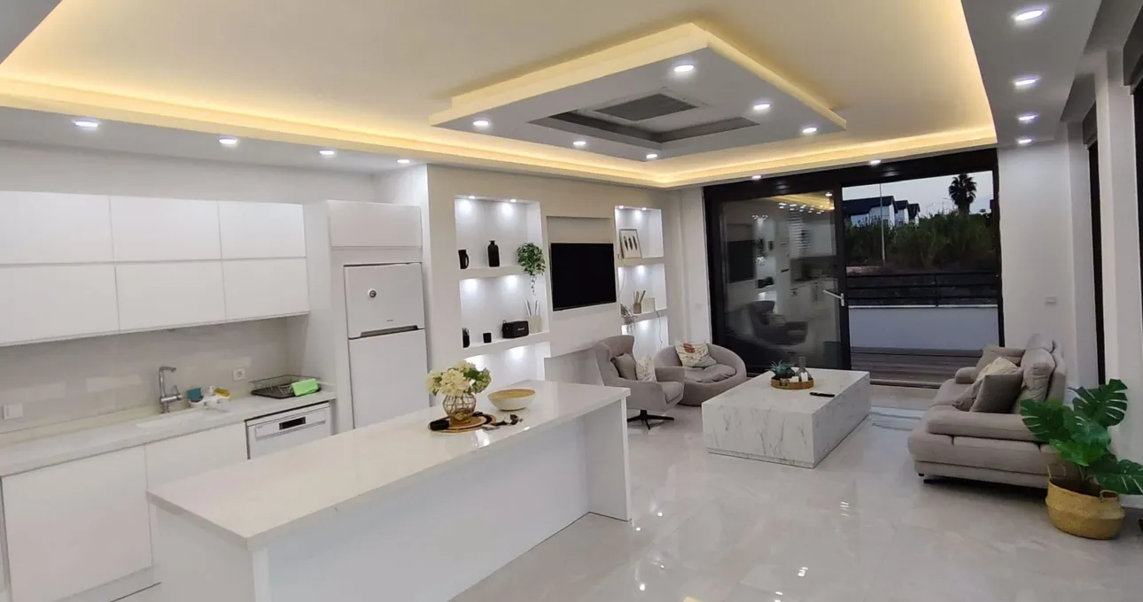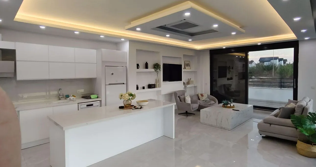 Tam donanımlı mutfak, modern mobilyalar ve geniş oturma alanı sayesinde ev konforu tatil boyunca devam eder. Her detayın özenle düşünüldüğü villada, uzun süreli konaklamalar için gerekli tüm ekipmanlar mevcuttur.