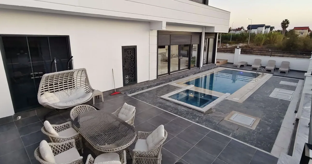 Villanın en önemli avantajlarından biri dışarıdan görünmeyen korunaklı havuz ve bahçe alanıdır. Bu sayede misafirler, tamamen kendilerine ait bir alanda özgürce vakit geçirebilir. Güneşlenme, yüzme ve dinlenme gibi aktiviteler mahremiyet korunarak rahatlıkla yapılabilir.